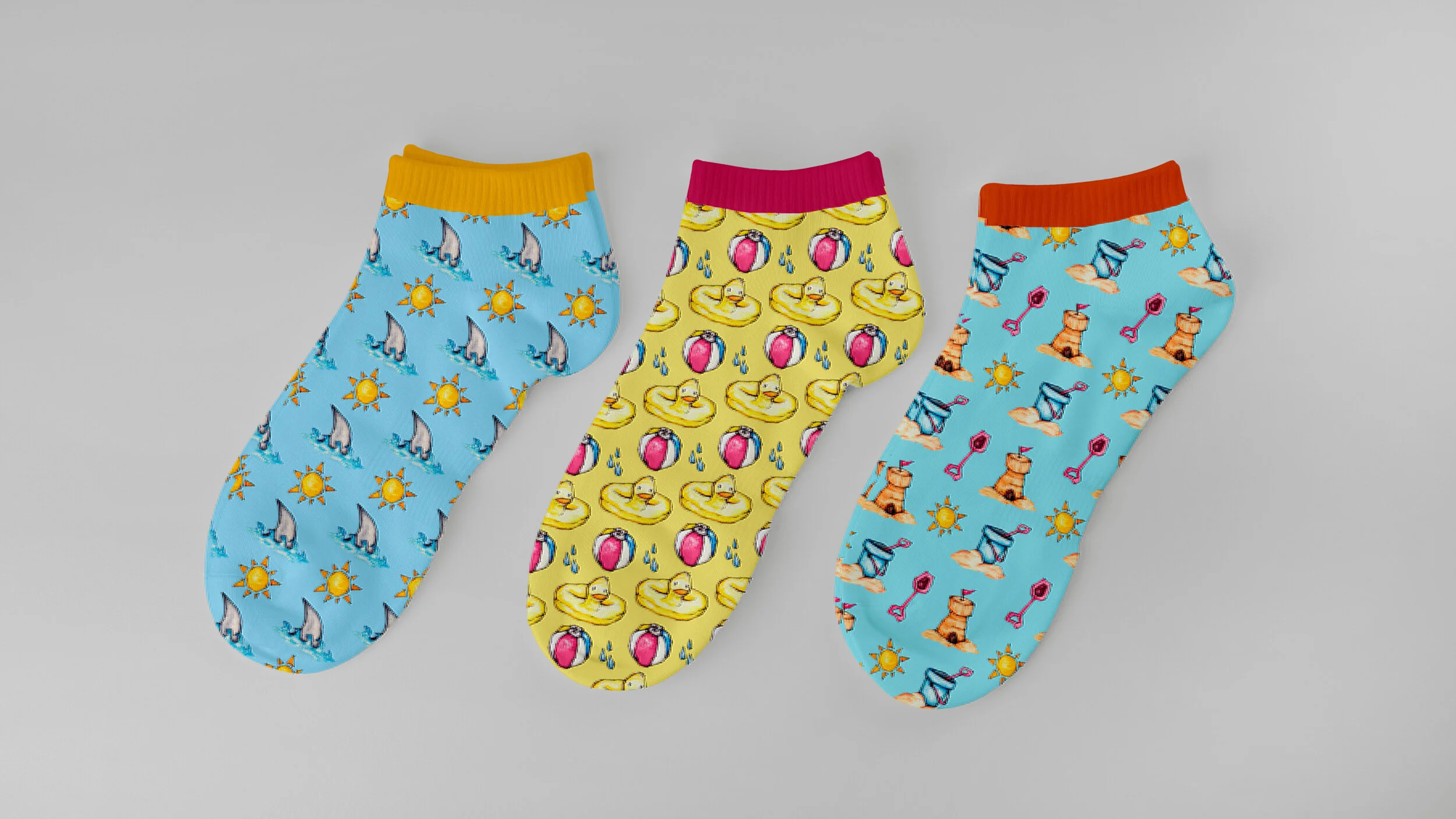 After sifting through some old sketchbooks, I came across several illustrations that never made it into a pattern set. Meant to evoke a steamy day at the beach, this design set is perfect for trunks, beach towels, etc.